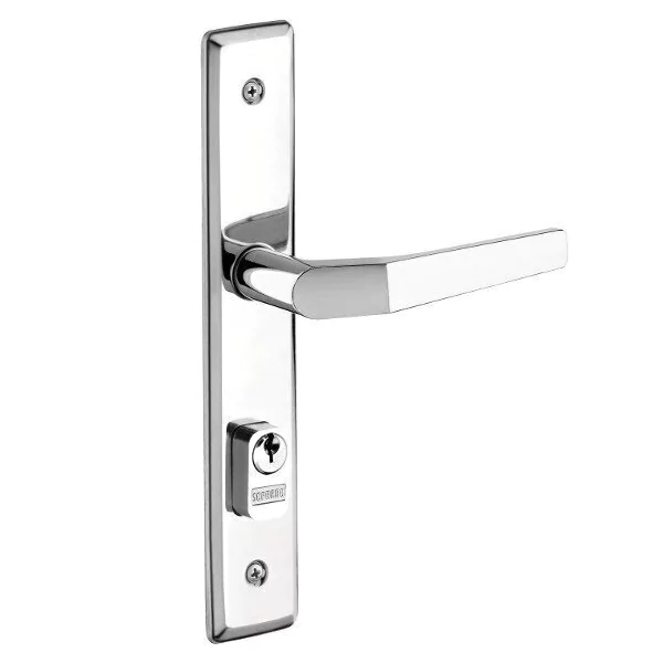 Essa linha de fechaduras é fornecida em opção para porta externa, interna e banheiro, sendo a primeira acompanhada por um cilindro do tipo de pinos (GII).