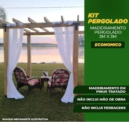 Kit Pergolado composto de varias Vigas Quadradas em PinusTratado em Autoclave. O Pinus Tratado Autoclave possui boa resistencia aos ataques de cupins e umiadade sendo assim uma madeira muito utilizada devido ao seu Custo x Beneficio.