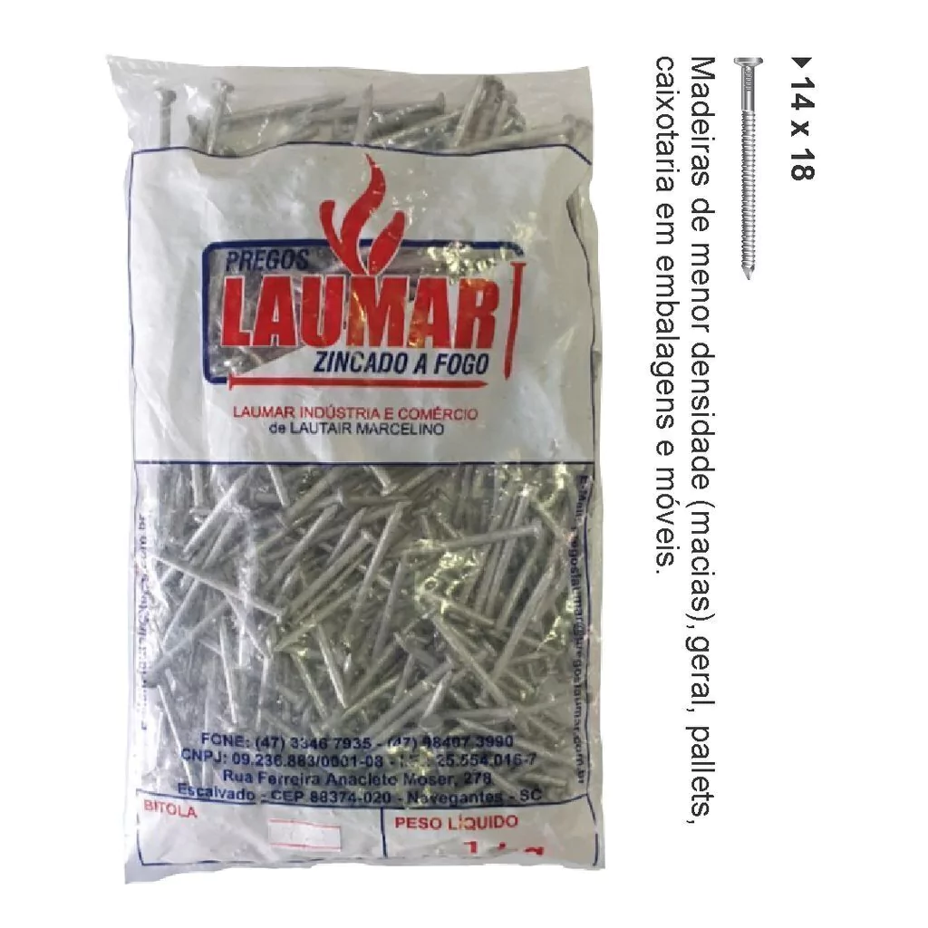 Pregos LAUMAR Anelados Galvanizados a Fogo 14 x 18